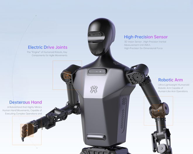 1. 人型設計:身長172cm、41自由度(DOF)、時速10kmでの走行や複雑な動作が可能